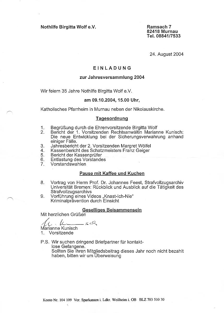 auf der Jahresversammlung der Nothilfe Birgitta Wolf e.V., am 9.10.2004 in Murnau