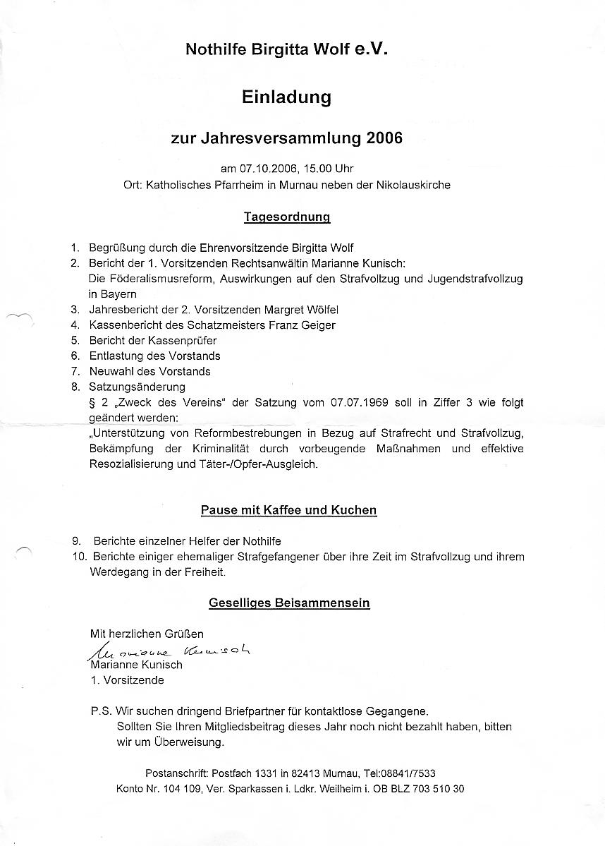 Murnau – Die kürzlich vom Deutschen Bundestag abgesegnete Föderalismusreform bringt für die Resozialisierung von Straftätern keine Vorteile. Dies hat die erste Vorsitzende der „Nothilfe Birgitta Wolf“, Marianne Kunisch, bei der Jahresversammlung des Vereins hervorgehoben, die neben etwa zwei Dutzend Mitgliedern auch Landrat Harald Kühn verfolgte. „Die Praxis des Strafvollzugs ist jedoch schon lange Ländersache“, erklärte die Rechtsanwältin weiter, „mit dem Ergebnis, dass wir in Bayern das schlechteste Verhältnis zwischen dem Personal der Justizvollzugsanstalten und den Gefangenen haben“. Dies liege auch an der Überbelegung der Häuser.